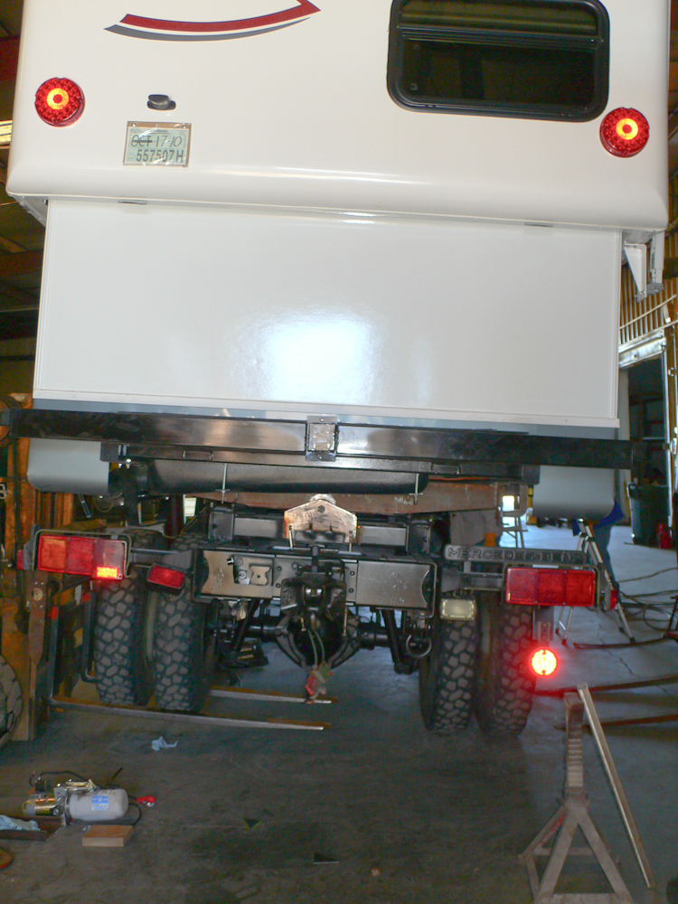 truck relative to the camper frame. Above, the forks of the fork