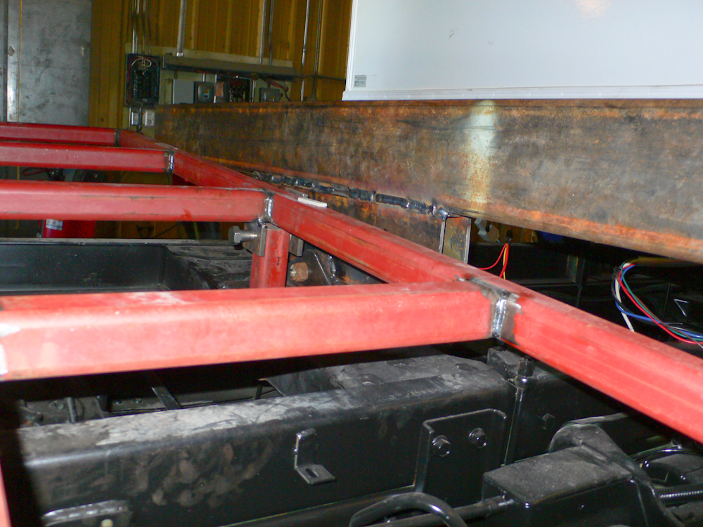 was not yet welded, but rather just clamped to the main I beams of the