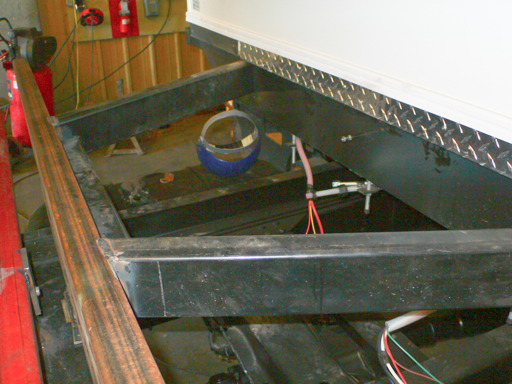 be in the open area between the frame rails in the photo above.
