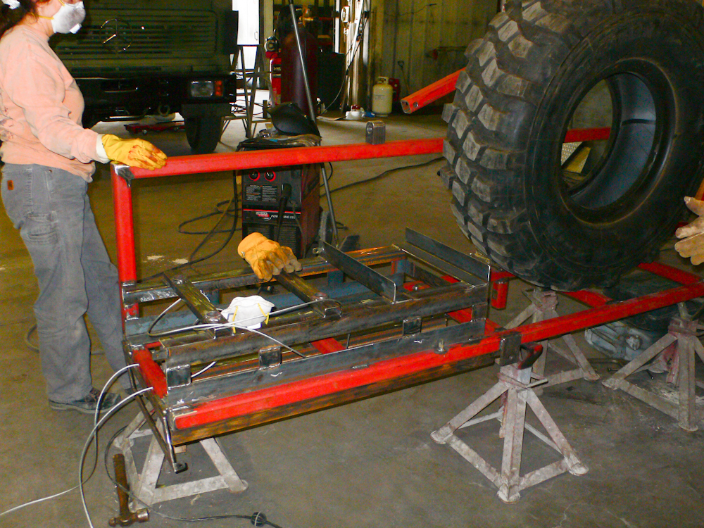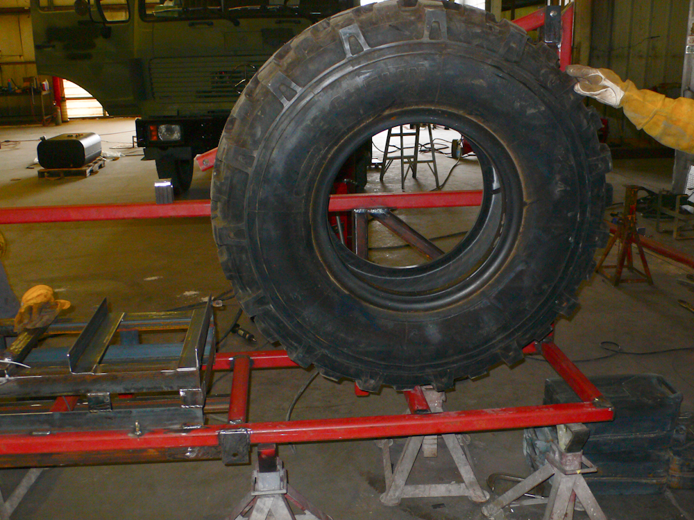 sanity check, we placed a full sized 395/85R20 tire on the rack to