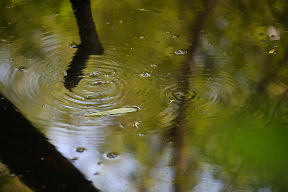 Most of the water along the trail had these small bubbles and ripples. This means the little fish that live there are actively eating the mosquito larvae. Amazingly, because of this, the deep swamp was free of most mosquitoes.