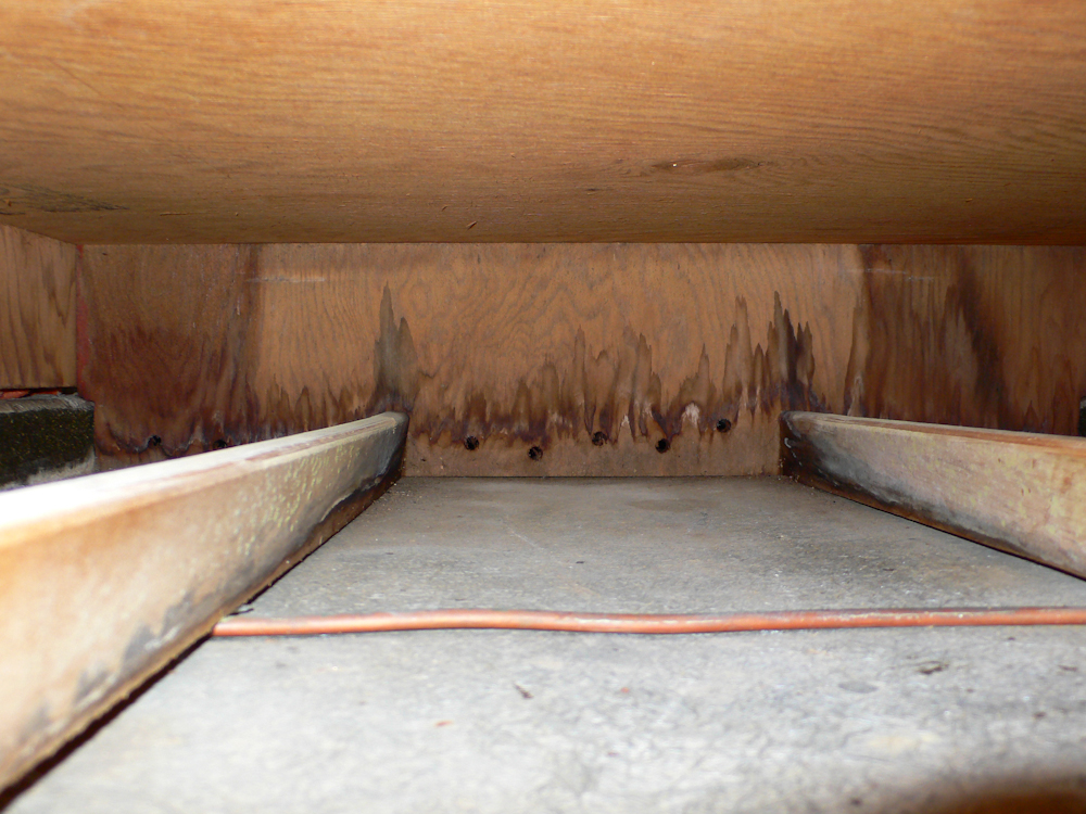 A view underneath the flooring of the dinette area revealed that the wood there was wet as well and showed mineralization stains suggesting that the problem had been going on for "awhile".