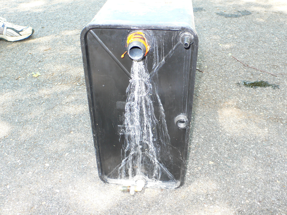 Mike attempted a repair of the existing tank with ABS glue. We coated all the seams and then did a fill test to try to identify any remaining leaks. The test showed no leaking, but as it turned out, it was not a sufficient test.