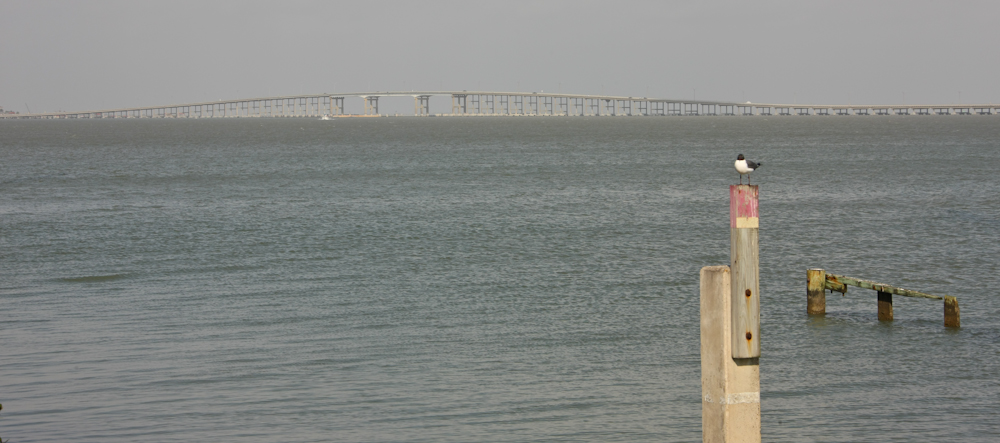 When we hit the south end of the island again, we decided to stop early for the day. We stayed at a nice KOA there and did laundry and chores. From our camp, we had a commanding view of the long causeway that connects South Padre with the mainland.