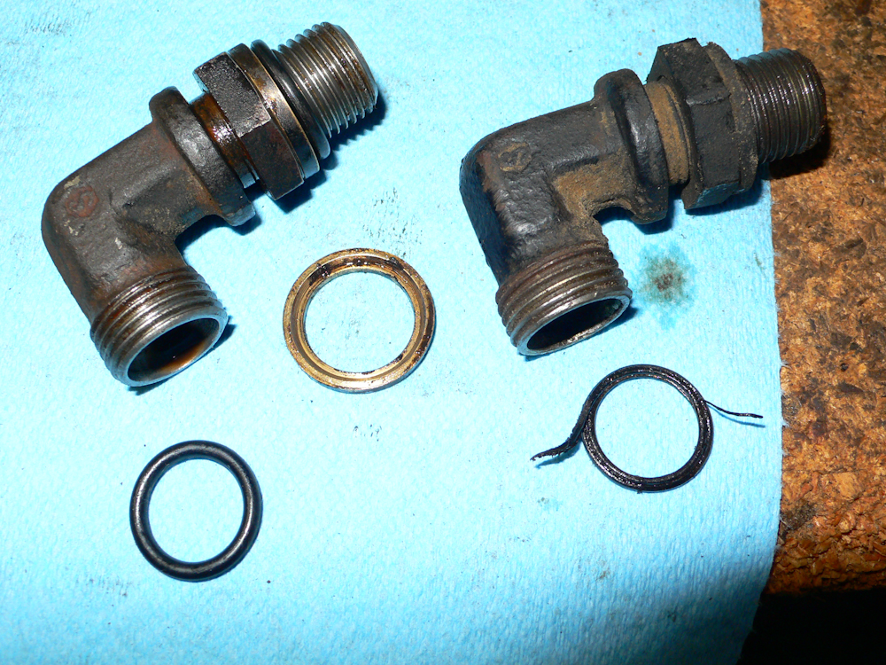 Due to a failure I had while on our Alaskan adventure, I happened to have a big box of metric O rings which served me well in this task. Above, you can see fittings before and after cleanup.