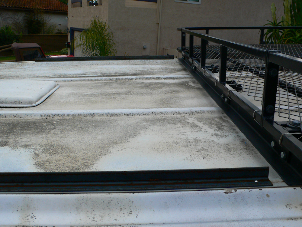 The panel will be mounted to the front of the roof rack using the same basic approach. Each end connects to the camper roof via a piece of angle iron that will be bolted and pop riveted to the skin of the roof. The roof vent forced us to elevate the panel to allow the vent to be opened. After an event in Baja in high winds (estimated to be 90 mph), we were very cognizant of the lifting forces that might be applied to the panel. Thus, we made the frame and mounting extra robust.
