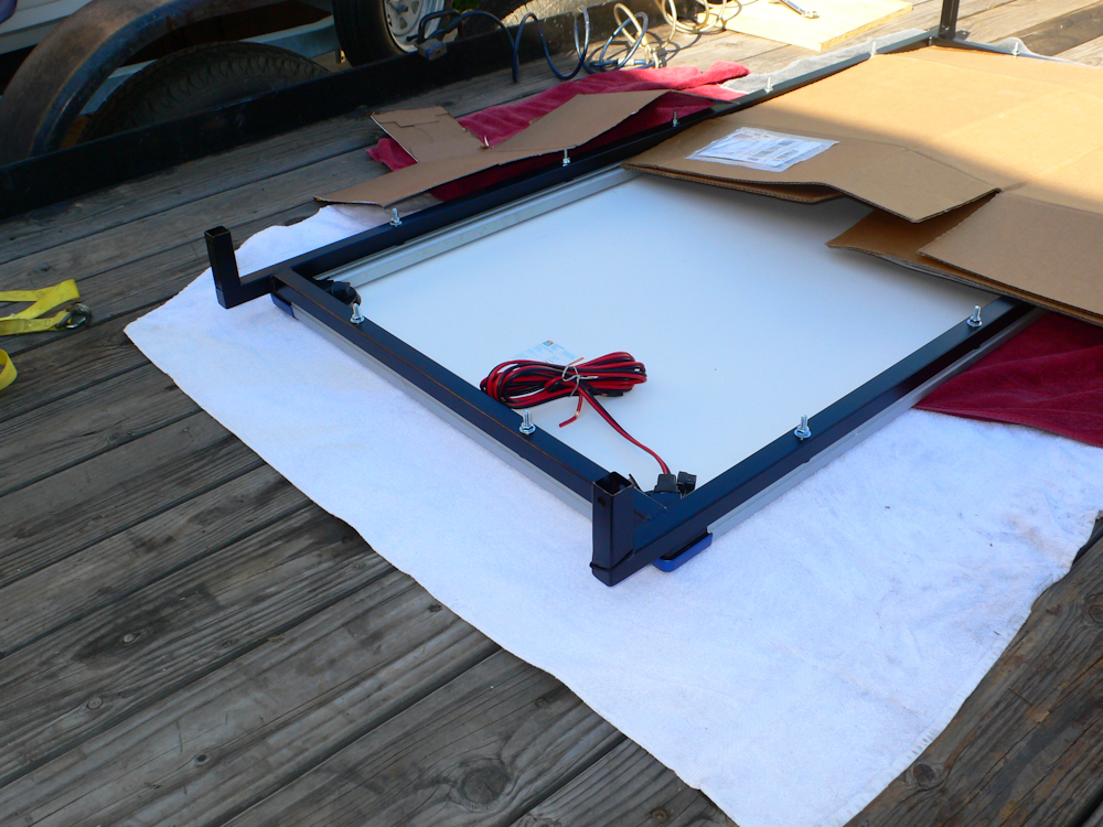 The panel was attached to the frame and some final touch-up painting was done before lifting the assembly to the roof for mounting.