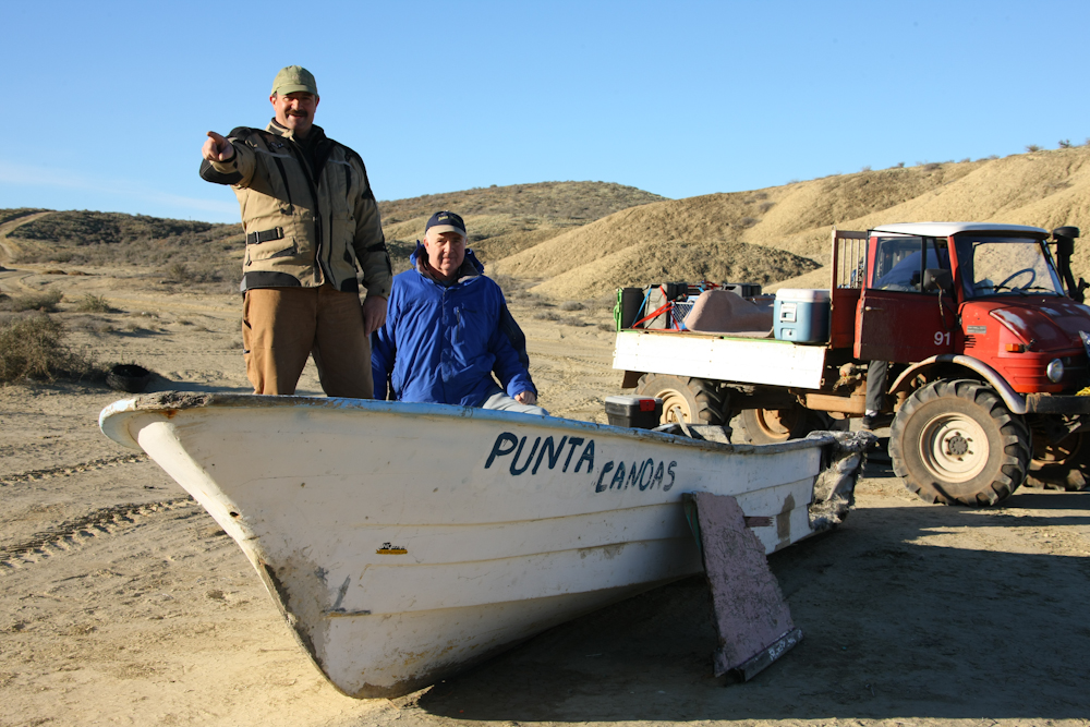 Some of the coastal fish camps were pretty busy.  The dwellings on the coast are the part-time homes of the fishermen when their prey is in season.  Some of the guys had nice trucks and new outboards.  Note the new Honda outboard on the close panga in the photo above.