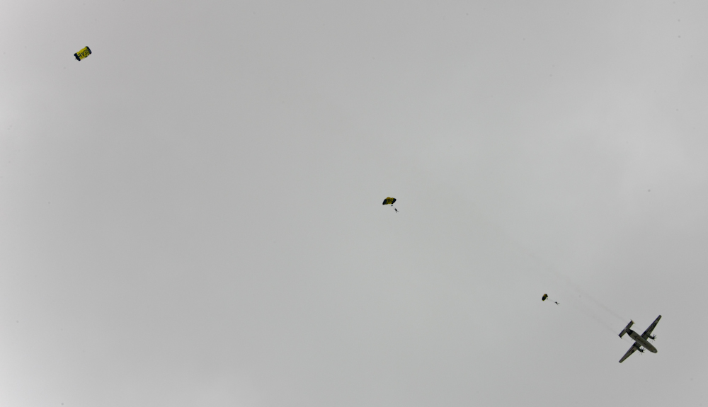 via parachute.