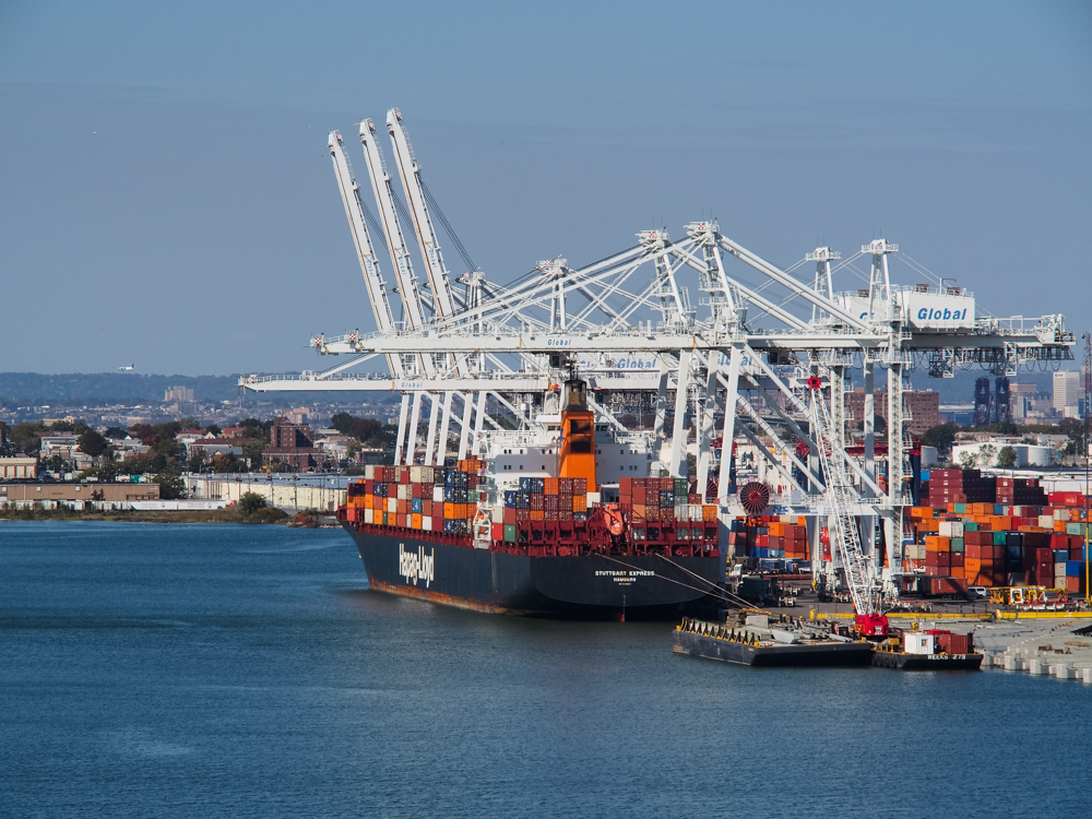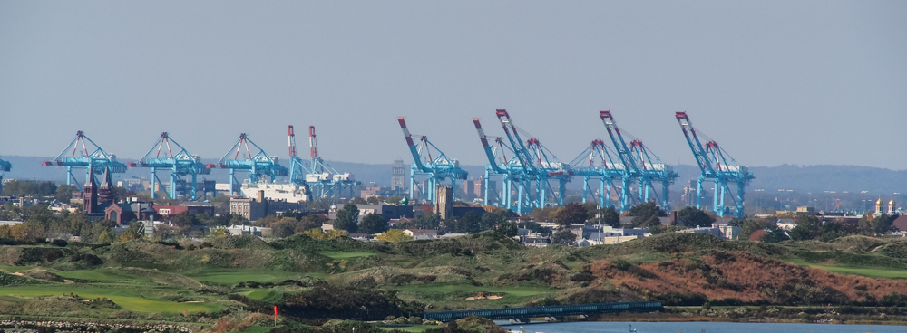 To the northwest a container ship was being unloaded at the Bayonne docks.