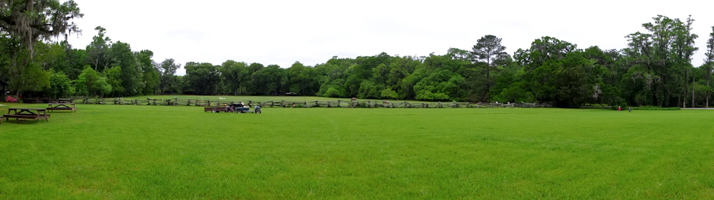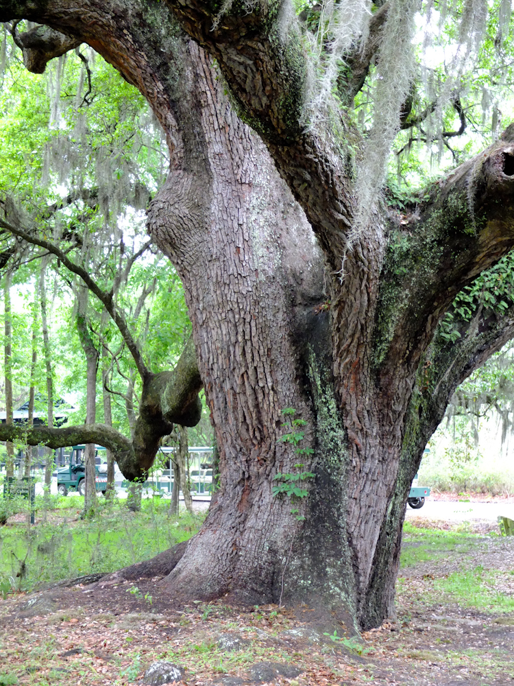 Moss hanging on the trees. The wooden ramp is a "sunning