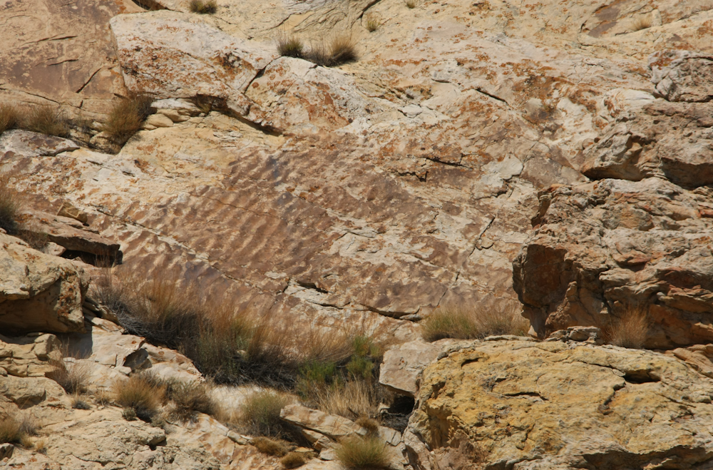 on the face of the exposed rock are sections that reflect a marine