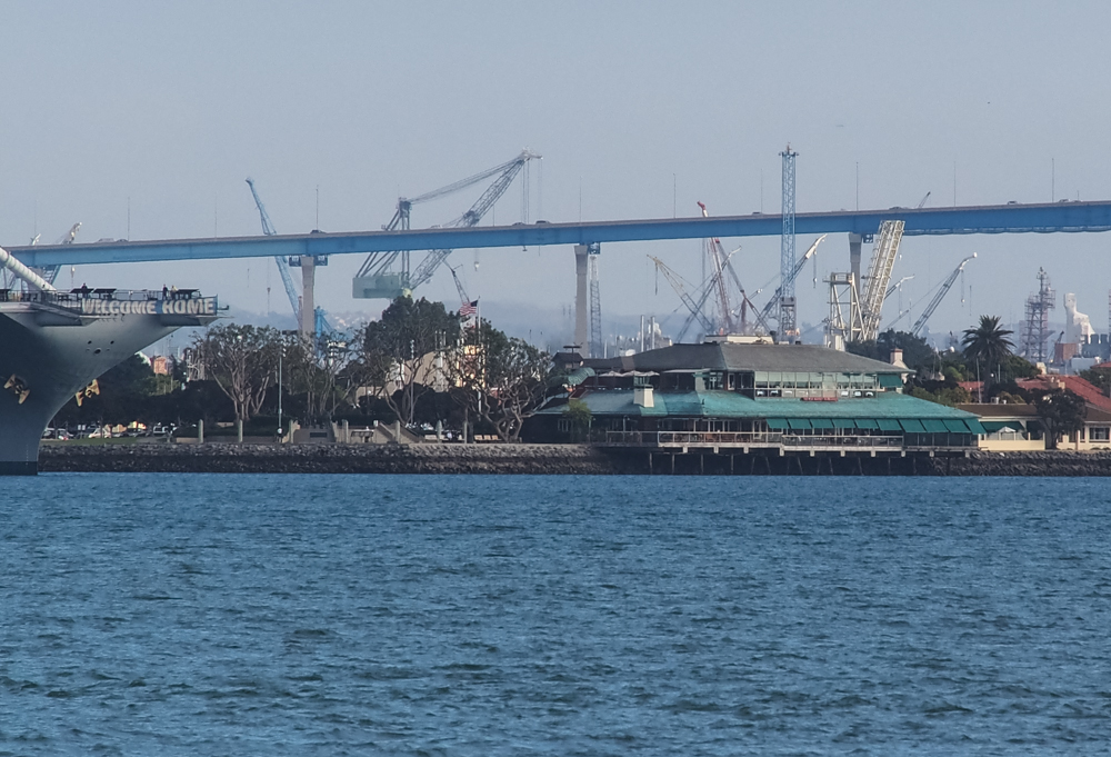 The Fish Market restaurant is right on the water. Lunch was good, excellent in fact, if a bit pricey. Note the cranes in the shipyards to the south of the Coronado Bridge.