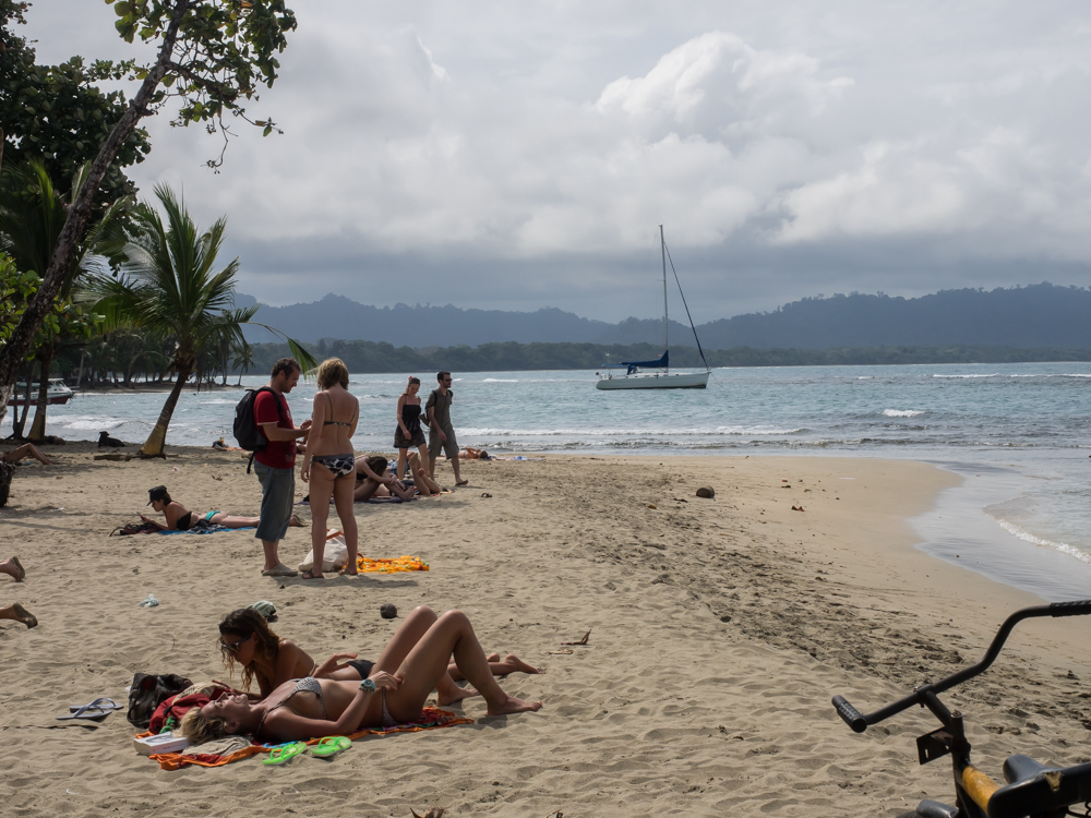 younger folks on the beach. Note the sailboat; it was not there when we came