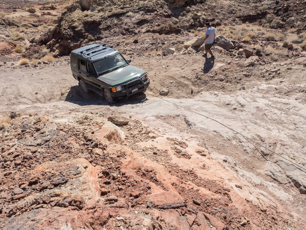 of the jeeps winched the Rover up the slab past the loose dirt.