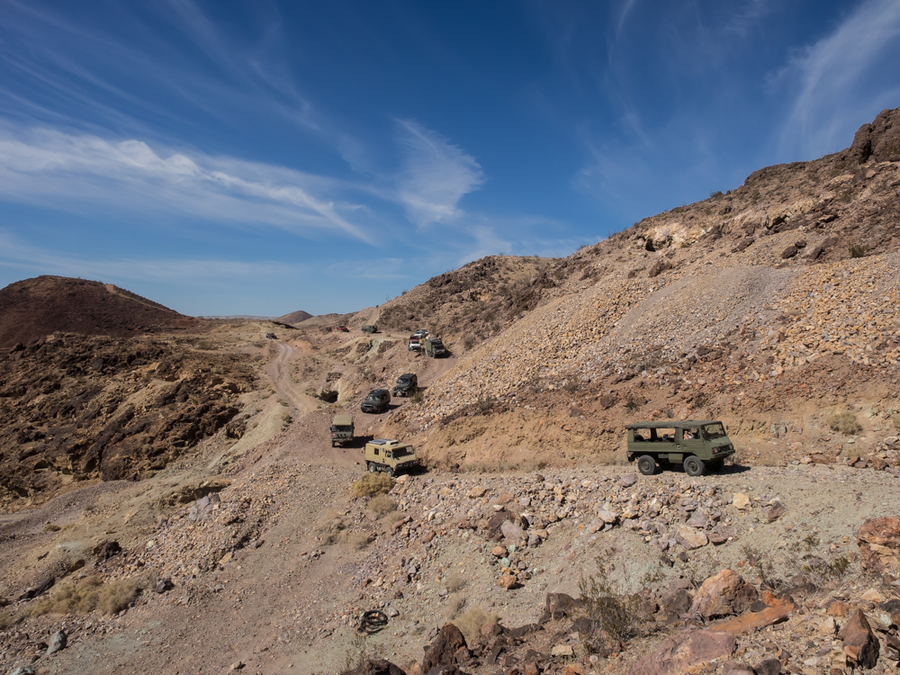 steep section of the dirt trail was causing some of the Pinzgauers