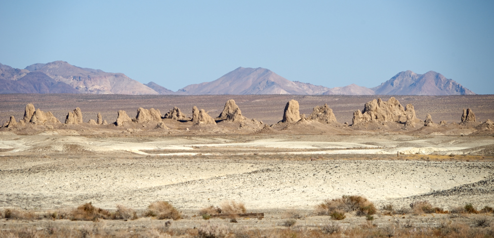the Trona Pinnacles. From the dirt road, we could see down
