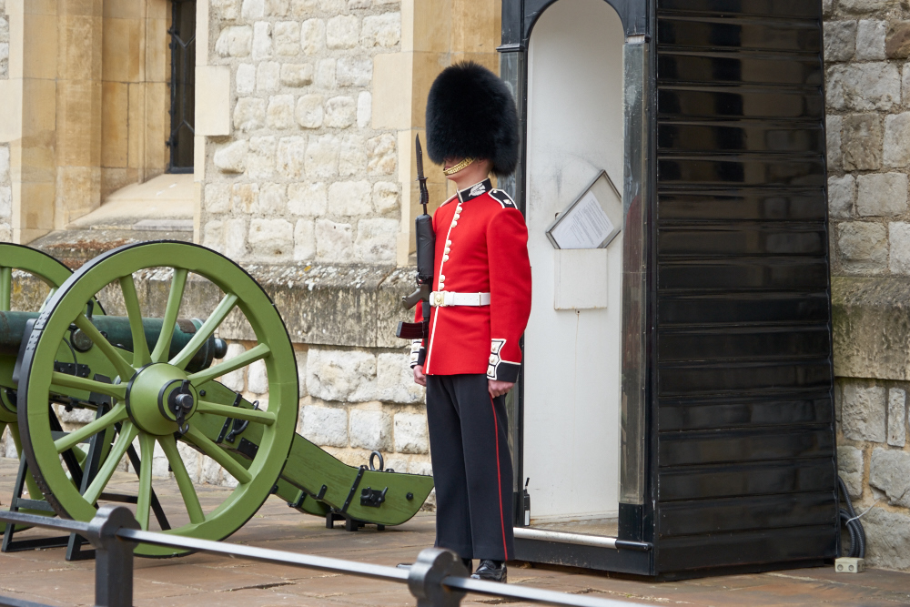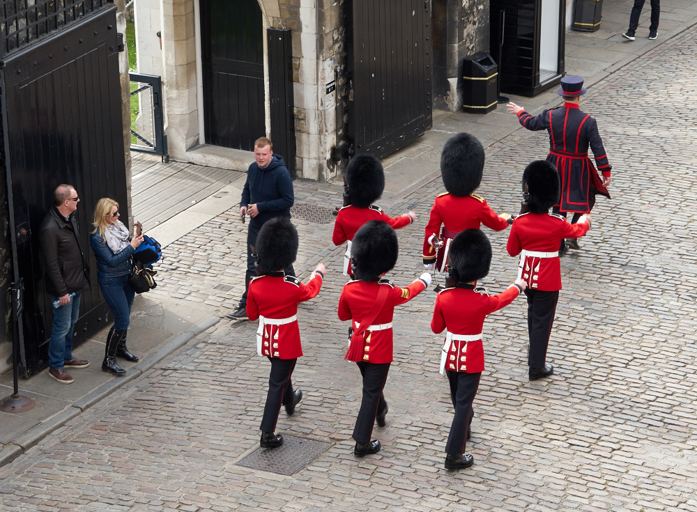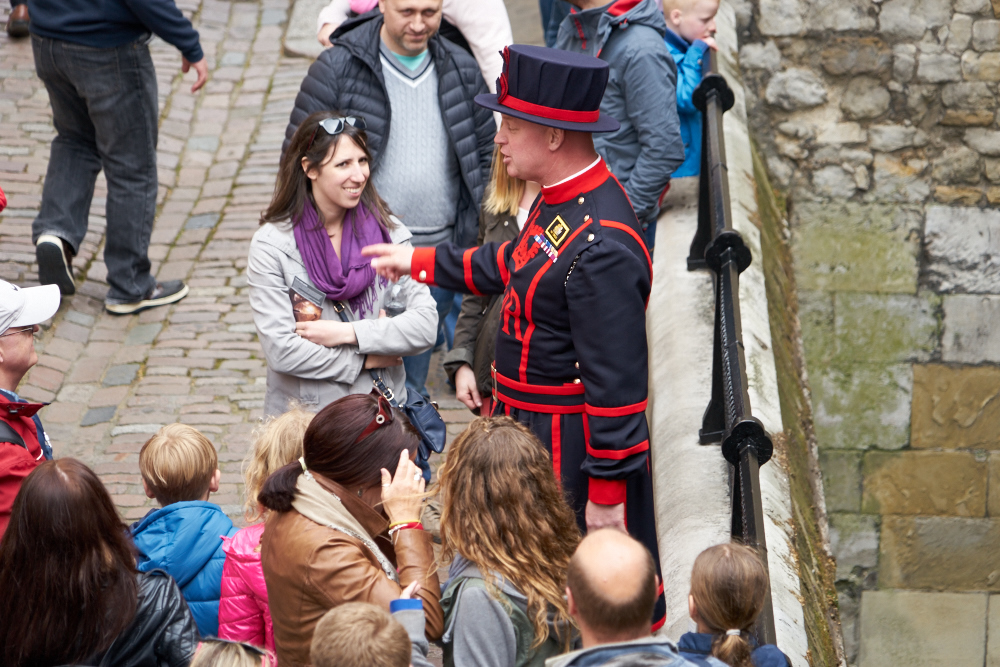 Yeoman Warders, also known as "Beefeaters" (like the gin), are