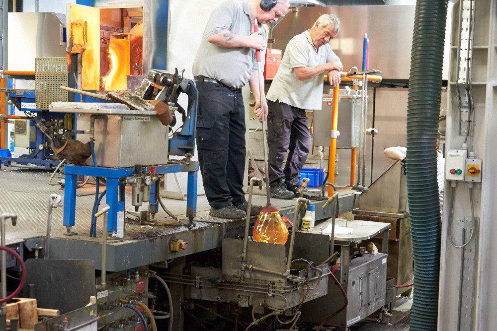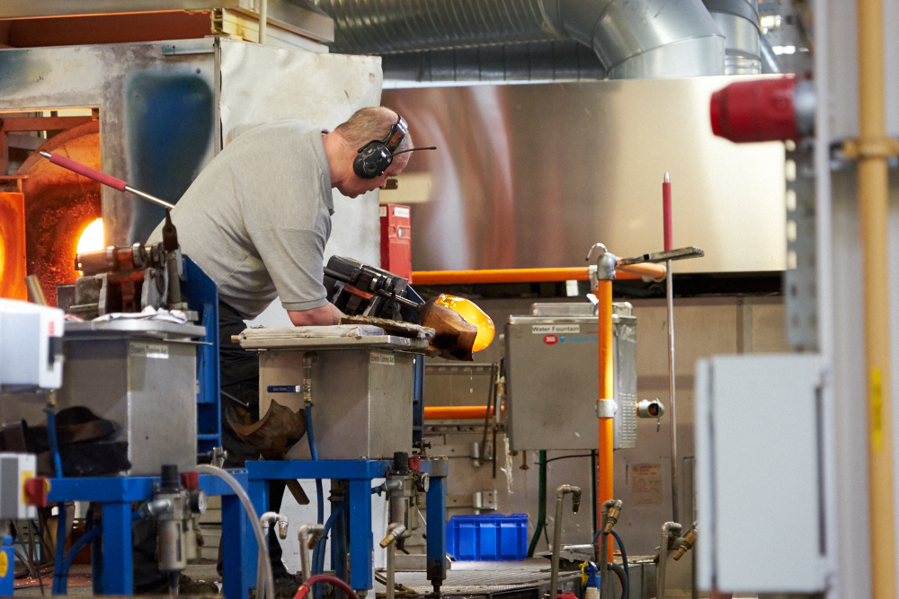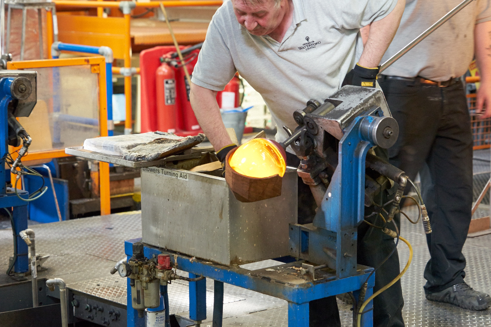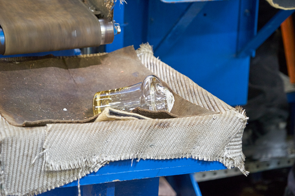 glass is spun on the pipe and shaped with a heat-proof pad while