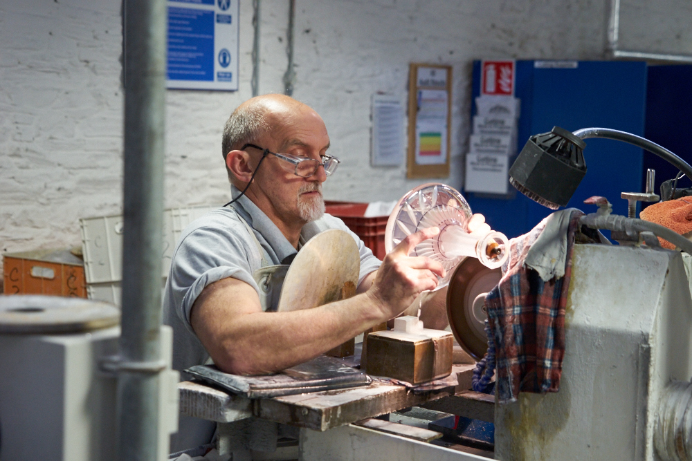stations. Craftsmen make each cut by hand using diamond