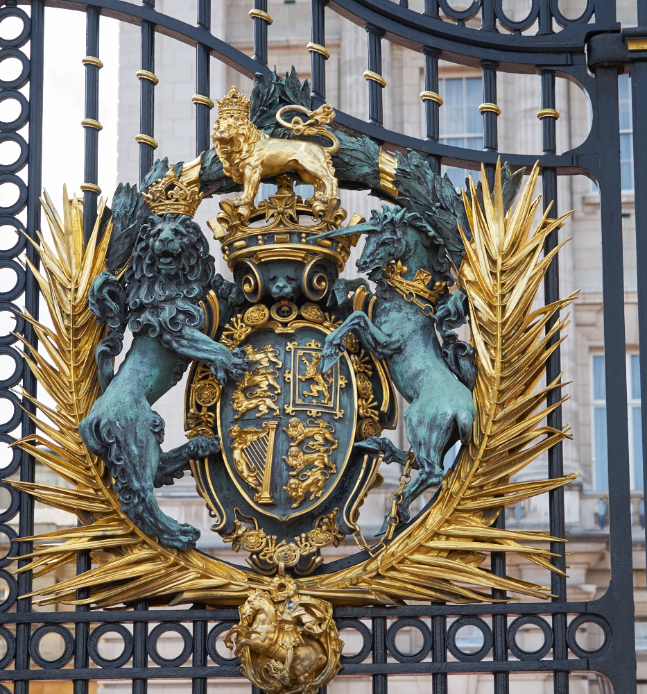 royal crest of the British Crown: the lion and unicorn.