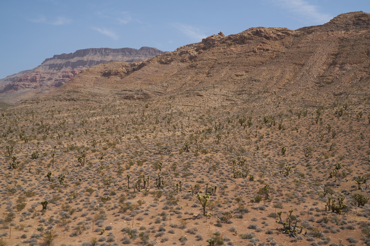 plateau to Mesquite, NV. Note the tilted strata resulting