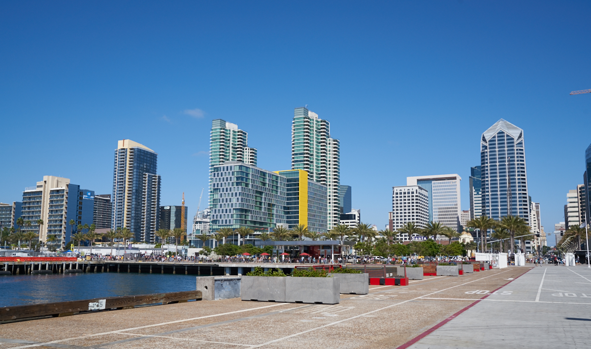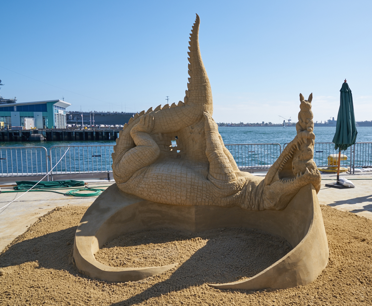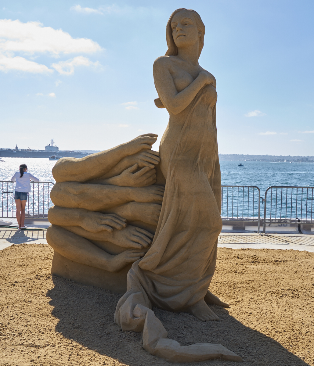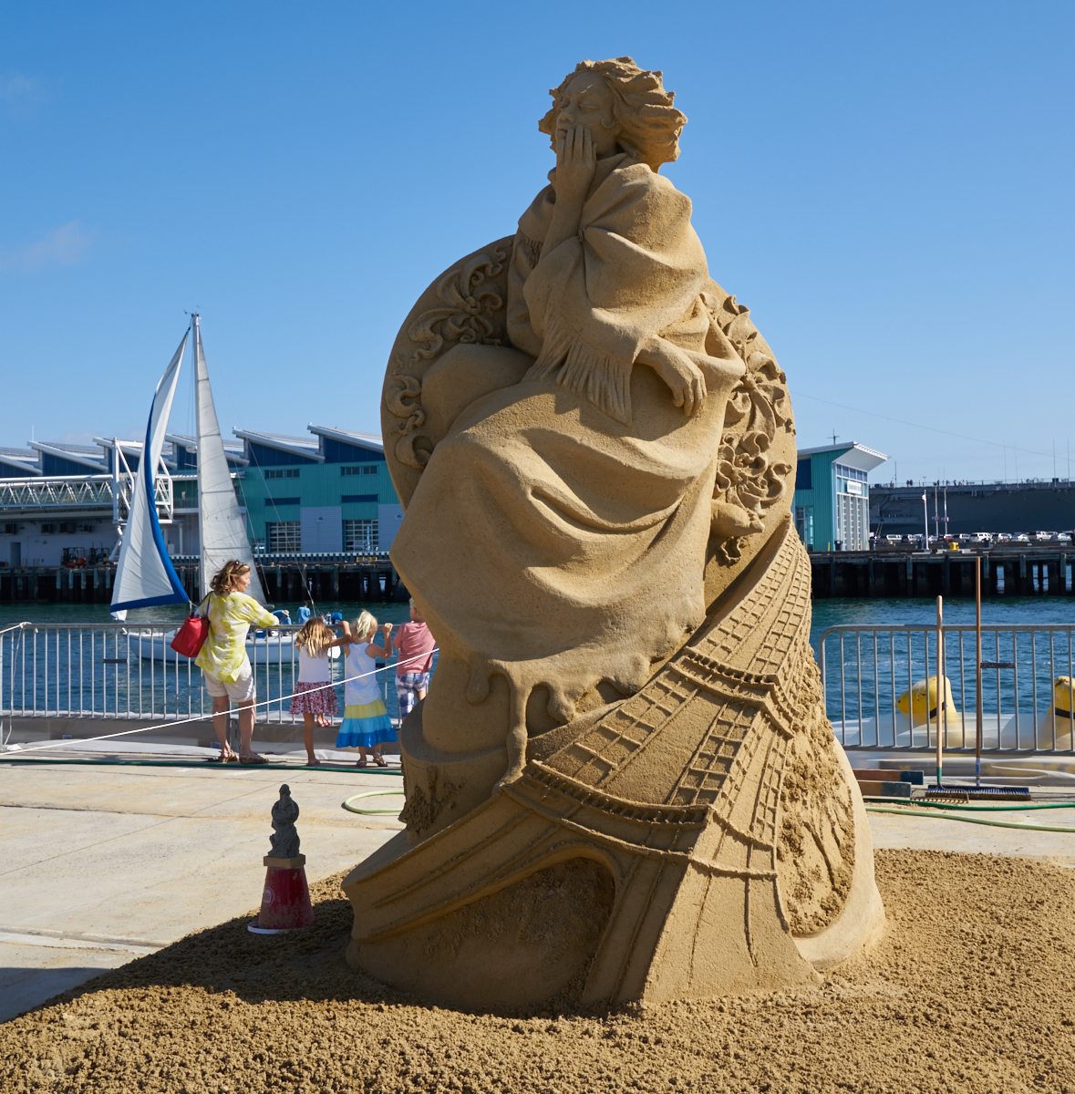 It was a super-nice Santa Ana day with temperatures in the mid-eighties, clear and no wind.  Kathleen had noticed that there was a "sand sculpting" (the current cool name for sand castles) competition at the B Street Pier.  It was Labor Day weekend so we headed downtown to check it out.
