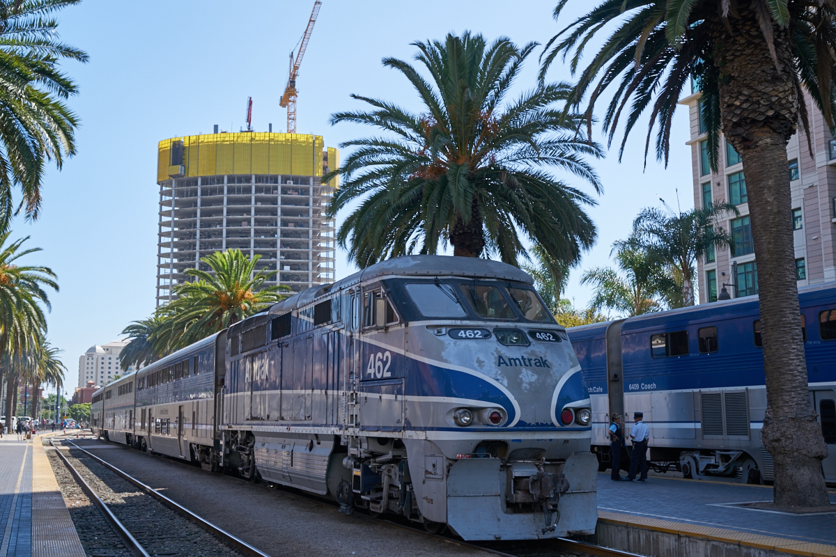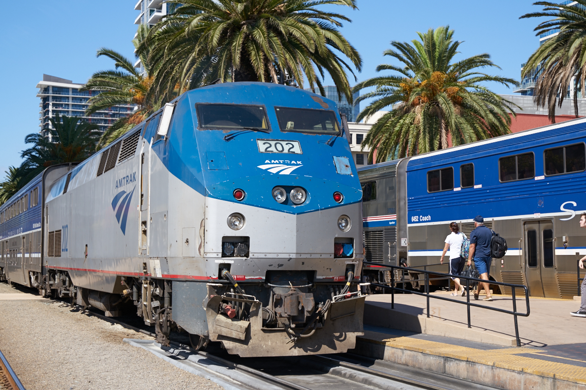 Our path took us right past the Amtrak station near the old Santa Fe depot.  This is one of their "newer" engines, but note the external deterioration.