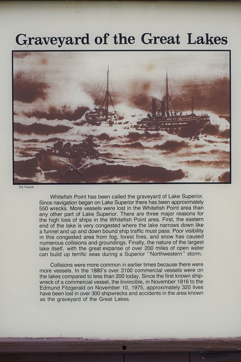 The shipwreck museum is a must-see if in the area. It surely gave us a feel for the dangers of shipping on the Great Lakes. And, of course, if you see the museum then you should see Upper Tahquamenon Falls as well.