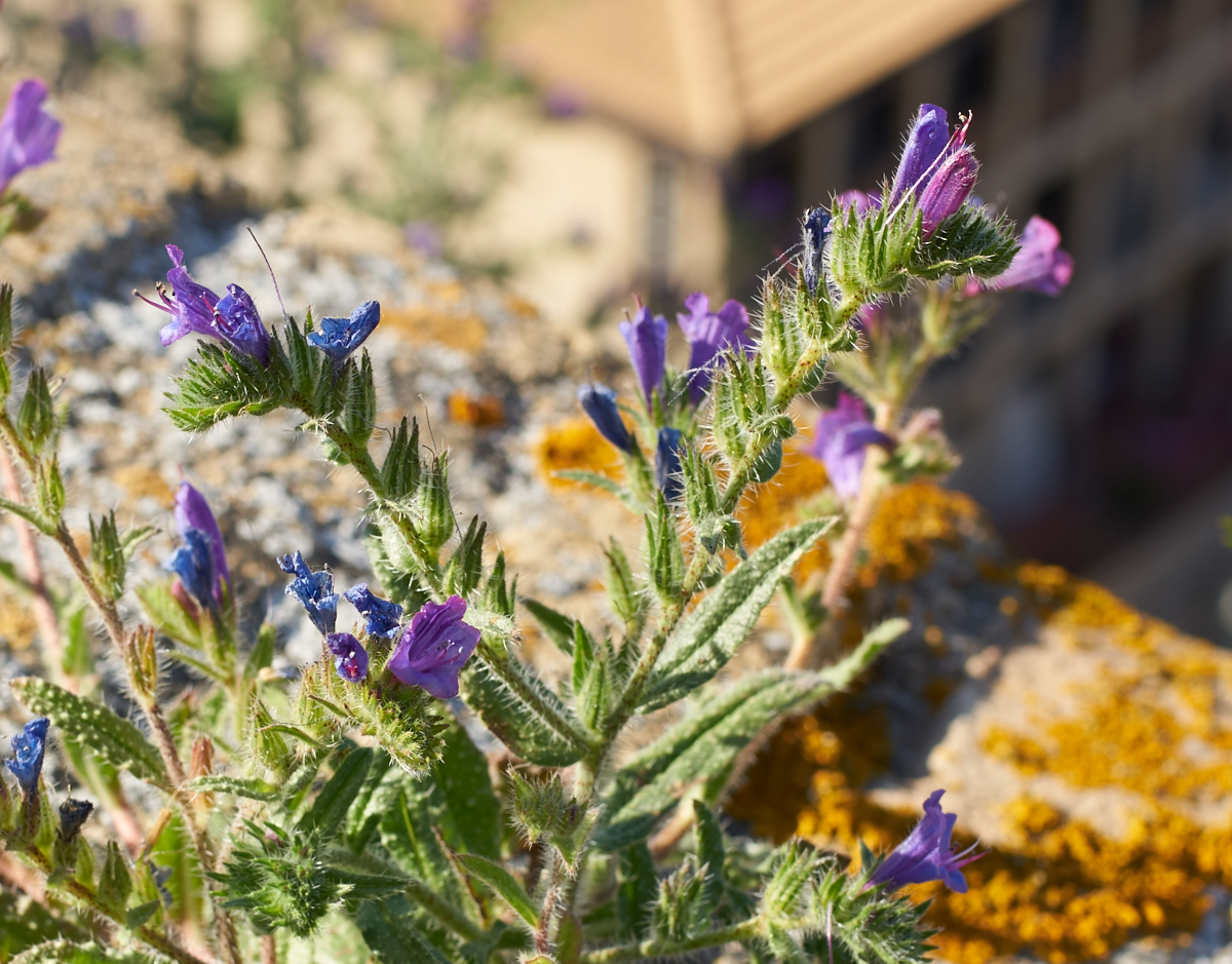On the top of the castle walls, any place that could catch dust had flowers of some form.  Note the spines on this species.
