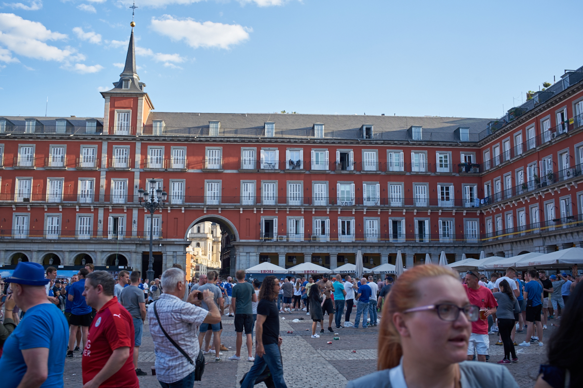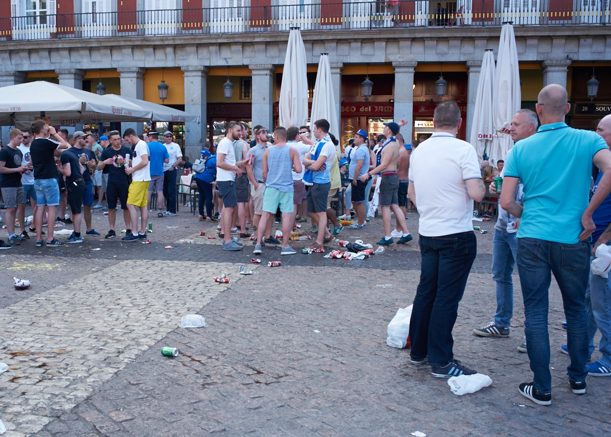 of buzzed, the Plaza Mayor was filled with drunk futbol fans