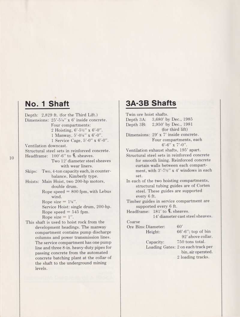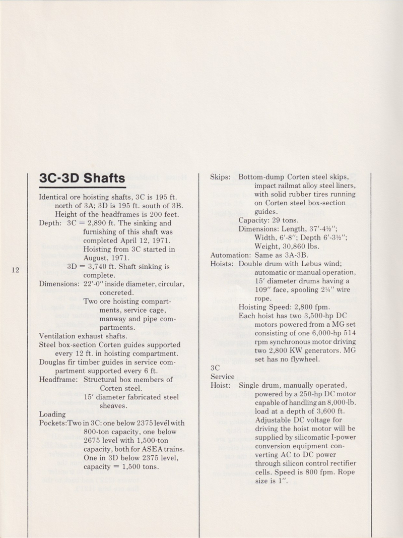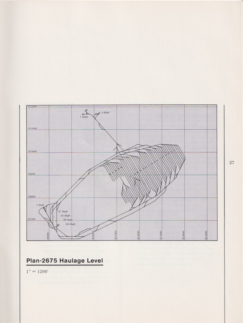 (feet below the "collar" at the surface), 2075, 2315 , 2375, 2615, and 2675.  Note that to get to the work area, you had to descend in the "cage" almost half a mile.  The deepest shaft descends to a depth of 3680 feet.  I worked on each of these levels at one time or another and the lower levels are hot-as-hell and very humid.
