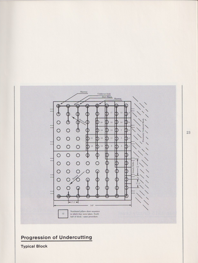 In the end, only about half of the available ore was recovered.   The ore body was split by a vertical fault so the upper body was mined first.  The second part was overcome by a combination of environmental and financial issues and remains in place today.