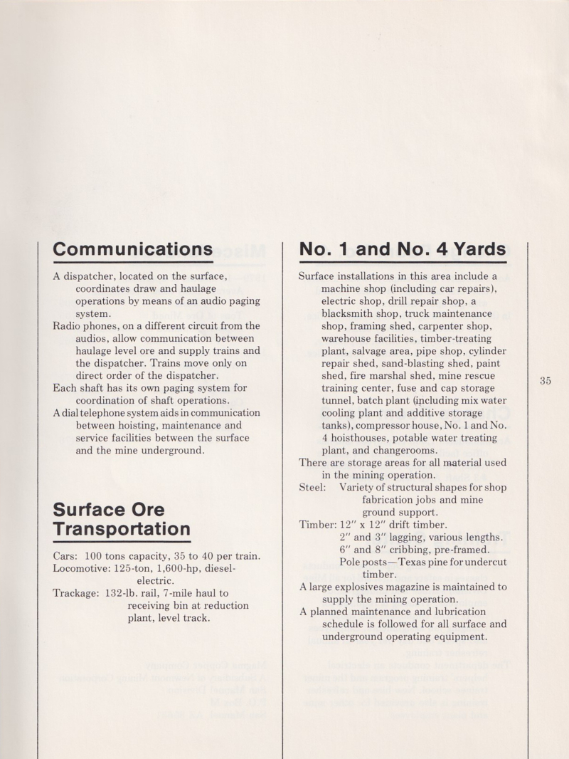 The mine was known to the locals as "San Manuel" for the nearby village.  Formally it was Magma Copper Company, San Manuel Division.  Unlike most of the other copper mines in this area of southern Arizona which are "open pit", this mine was underground, also known as a "hard-rock mine".  One of my good friends from college also worked there at the mine, as did his father, and they obtained an informational brochure on the mine.  Those pages are scanned and included below.