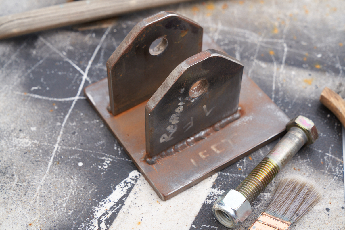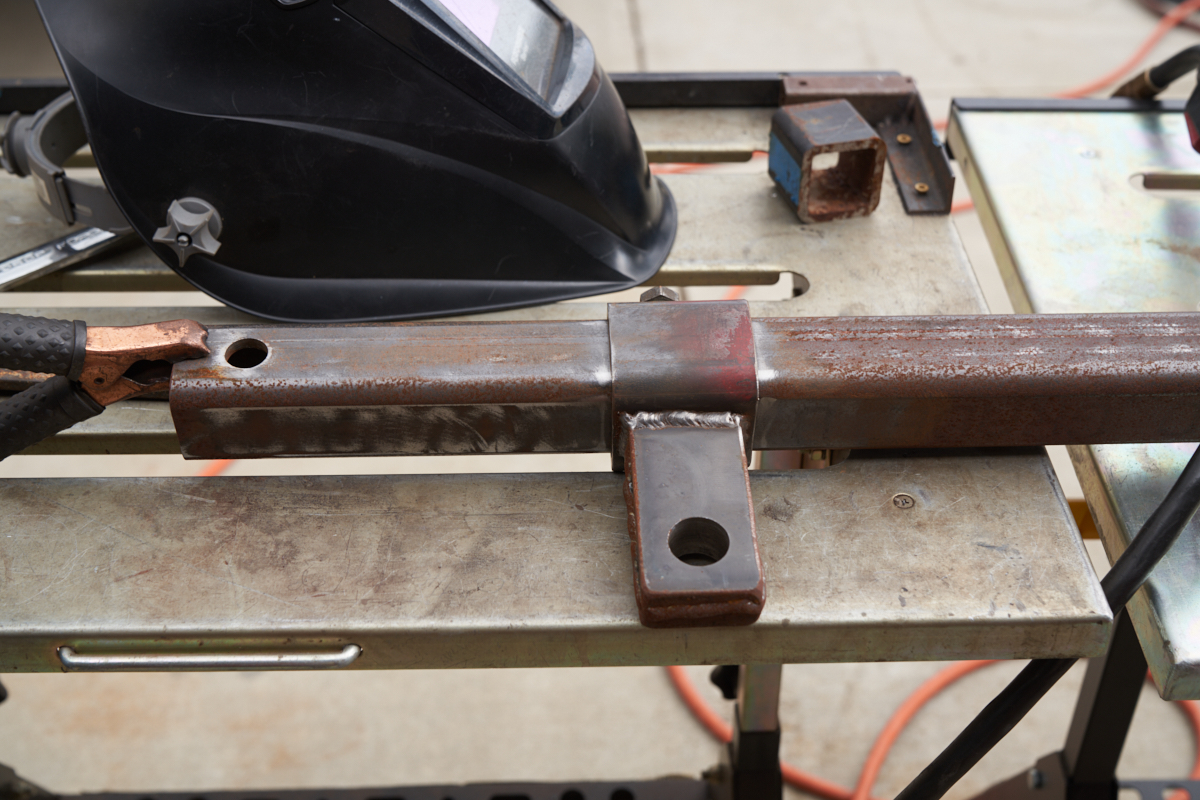 Two weld-on braces were needed for the next box: one fore and