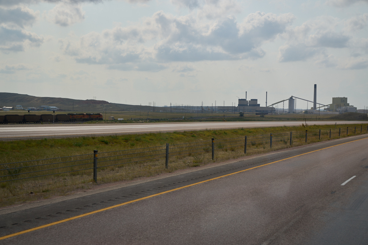 We continued south to Spearfish, SD and we turned west on I-90.  We continued to Gillette, WY and passed the biggest rail lot I have ever seen.  There were hundreds of locomotives there, all presumably in support of the transport of coal that is mined in the area.  This power plant sat astride the railroad main line.
