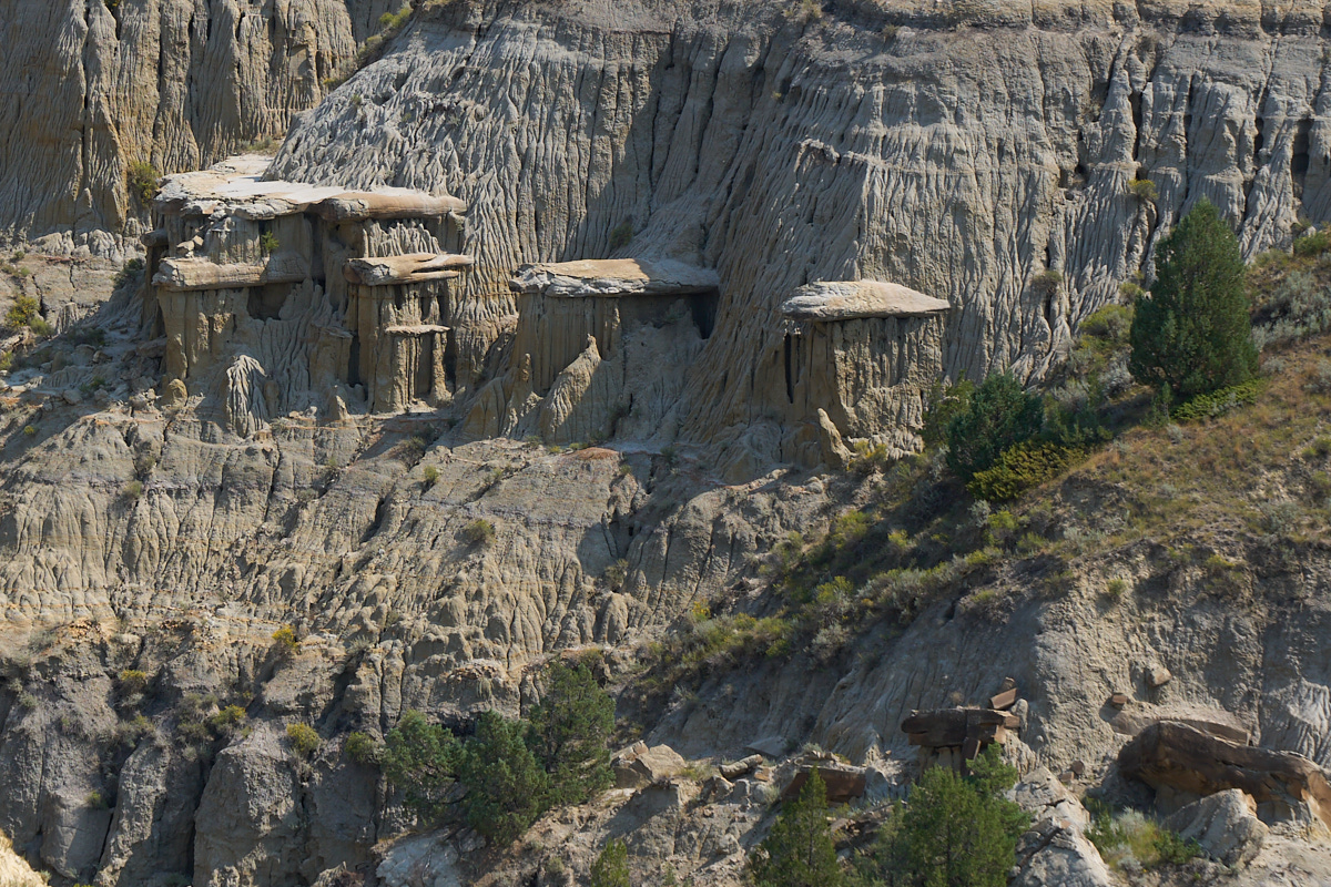 One of the strata in this area is quite a bit more robust and the harder cap rock allows formations of interesting hoodoos.
