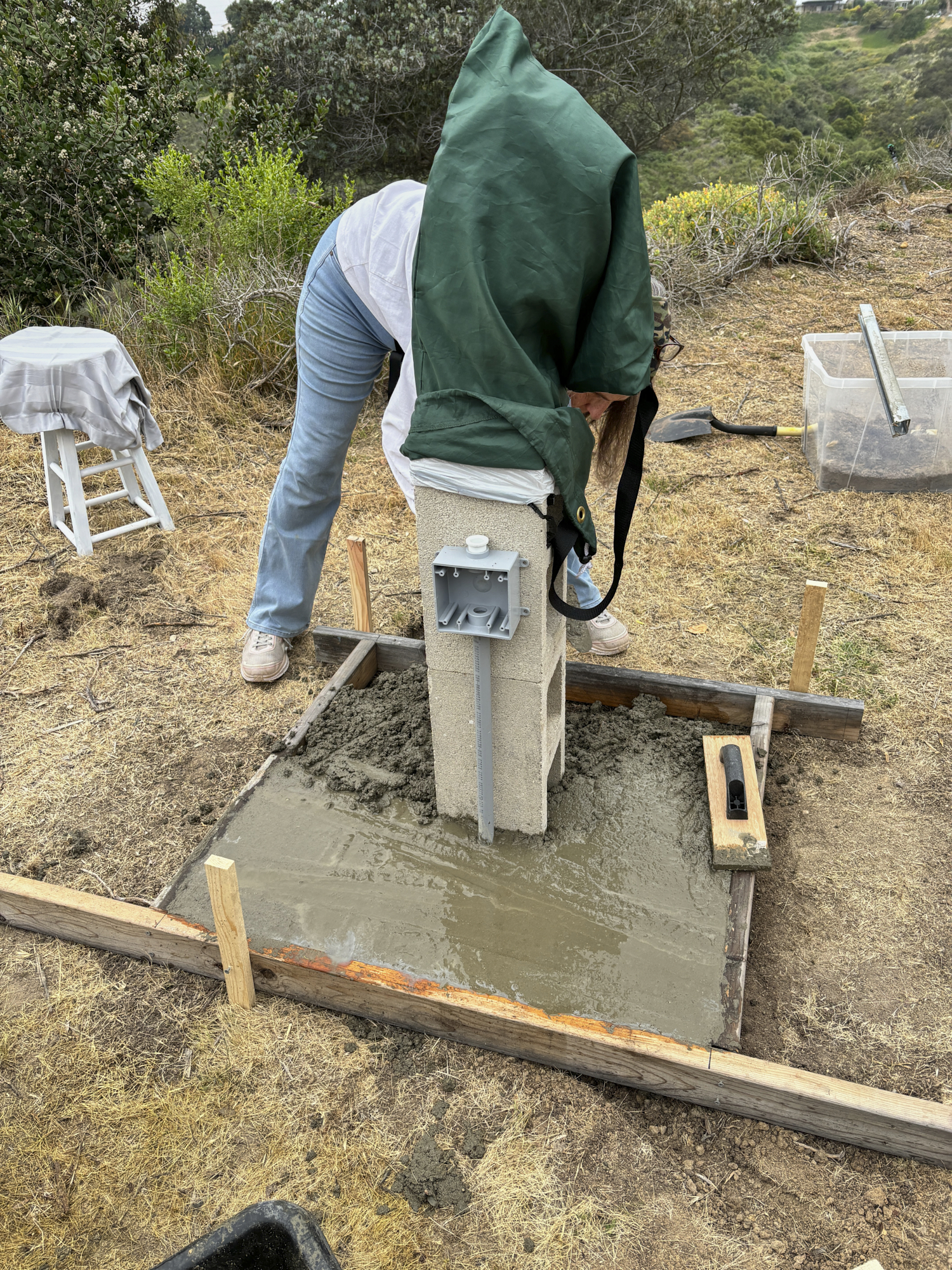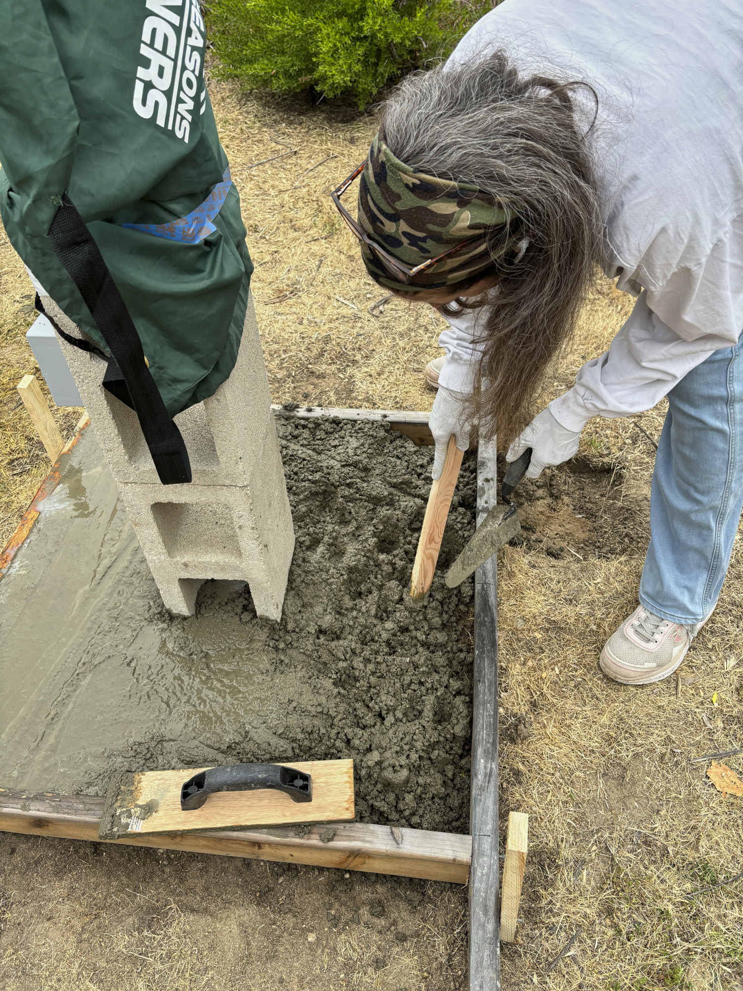 up any excess concrete that was spilled on the "grass" area.
