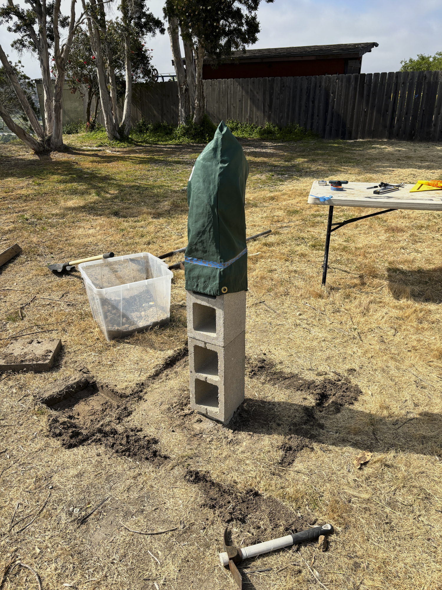 Next, a hole was dug at the selected location deep enough to