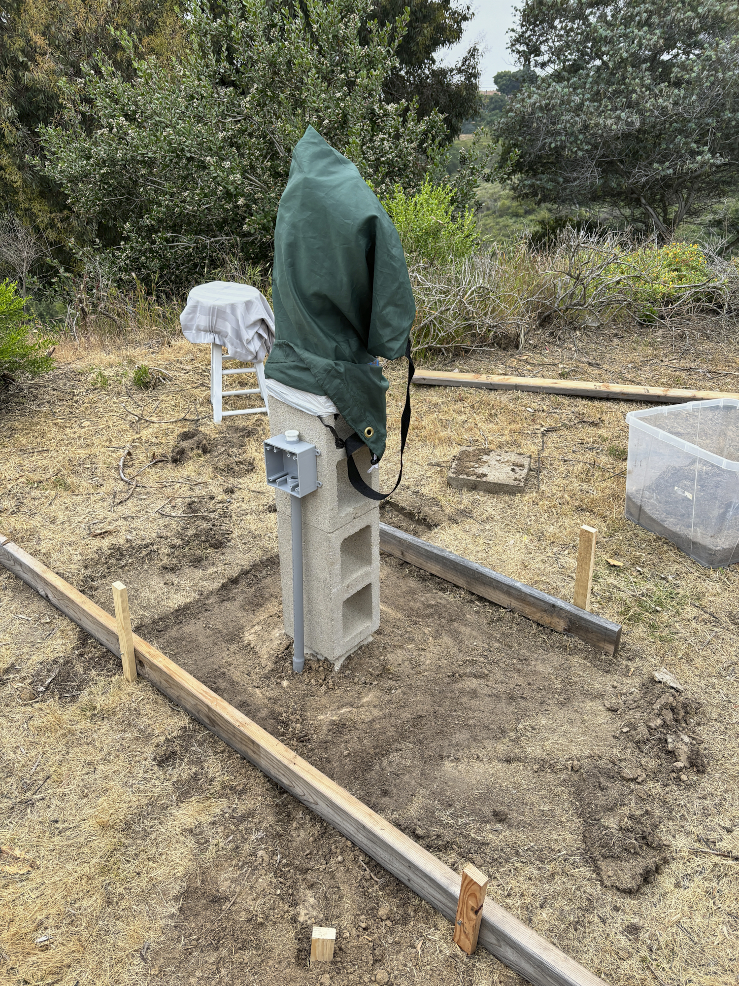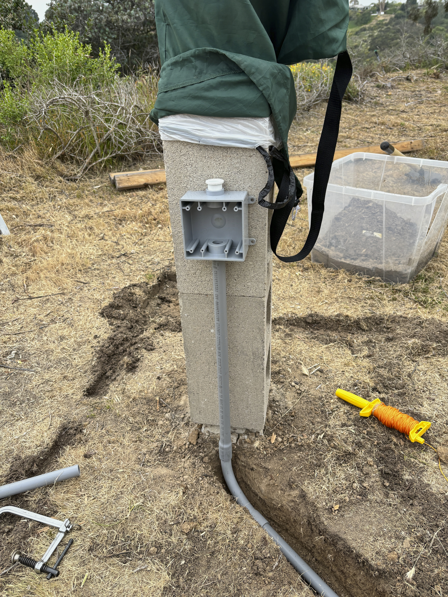 electrical conduit and a 2-gang outlet box. Trenches