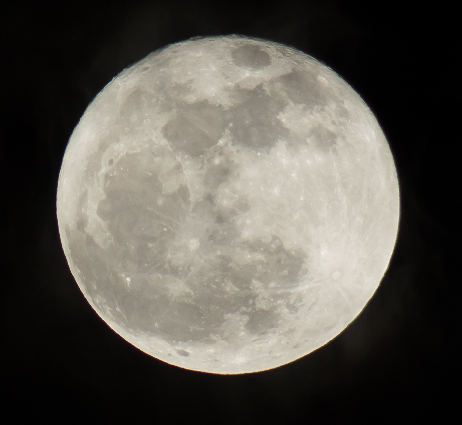 Over New Years in the desert, I got the photo above, again with the Oly/300mm Canon FD lens combo. The brightness of the full moon makes resolution of the fine detail of the moon's surface difficult and therefore the focus was not fully critical.